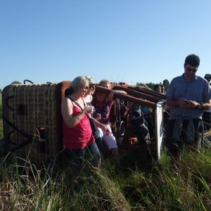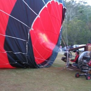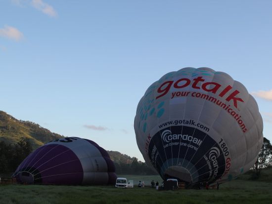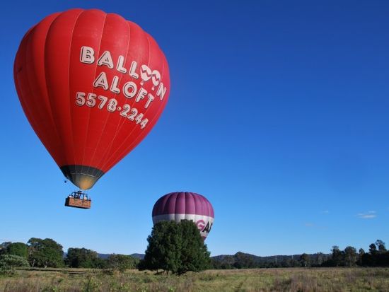 12月31日に参加しました。3:35にピックアップでしたが、離陸時には既に日は昇った後でしたので、残念ながら朝焼けなどは見れませんでしたが、それはそれで綺麗な景色が見れたので良かったです。離陸場所はゴールドコーストから車で1時間ぐらい走った農場でした。当日のコースは他の方の記載とは違いますので、おそらく風次第で決まるのでしょう。内陸方面で農場中心の景色でした。初めての気球体験でしたので、そのふわりとした乗り心地、時々バーナーをふかす時意外は無音で、ひたすら静かに空を飛んでいるという状態です。遠くに車や牛などを見ながらのんびりした時間を過ごせ最高の気分でした。ただし、最後の着陸場所がが牛の糞だらけの農場でしたので、皆さん糞を踏んでしまったり、糞の上にこけた方もいて大変でした。その糞の上でバルーンをたたむのを男性陣は手伝う必要が有りますのでそこも少し残念でした。その点で★4つにしました。着陸後また1時間ぐらい車で走って食事となりましたが、その時に1度トイレ休憩が有っただけでしたので、ピックアップからは4時間ぐらいはトイレに行けませんので、出発前には水分を取らないことをお薦めします。それから、保険代や後で販売してくれる写真のCD(30ドル)などの支払は全て現金でしたので忘れずに持参して下さい。