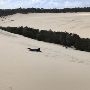 ベニヤ板(?)に、うつ伏せに乗っかって、5分くらいかけて登った砂山から、数秒で滑り降ります。小学校低学年くらいの子供さんも挑戦していたので、安全なアトラクションなのだと思います。意外と、楽しかったです。二度とやらない(やれない)かもと思ったので、4回滑ってきました。砂山を登るのが結構きついので、4回もトライしたバカは私一人でした。