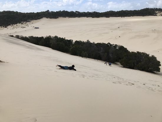 サンドスライディングは砂漠の上から気持ちよく滑れるので、スリル満点でした。
