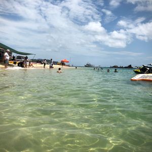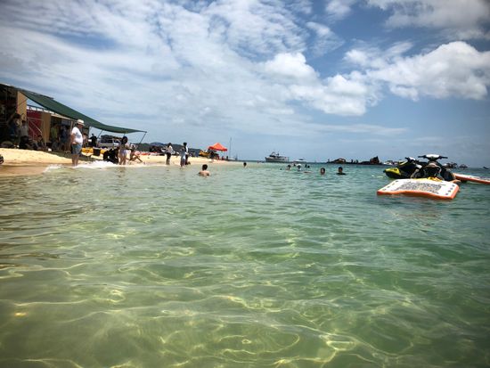 朝から雨でした。船が出向して数分後には、天候のせいか激しい揺れに。家族5人での参加でしたが全員船酔いで撃沈。肝心のシュノーケルは小雨降る中、荒れ気味の海へ無理やり入ったものの視界は悪く、ぼんやりと魚が見える程度。ビーチへ降りて遊ぶ時間も設けられていましたが、雨が激しく、短時間に端折ってました。帰りも、やっぱり雨の中、風を切って走る船は濡れた体には寒すぎました。とにかく天気が悪かった。そのせいで最悪の体験となりましたが、スタッフの方々は一生懸命で、イルカを見つけてくれたり、シュノーケル代金を返金してくれたり、良心的でした。天気の良い日にもう一度行ってみたいです。