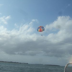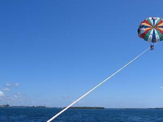 10歳の娘とパラセイリング、スピードボートを利用。当日は曇りだったが、合計2時間のアクティヴィティでかなり日焼けした。海上での日焼け対策が必要。スピードボートは、びしょ濡れになることを覚悟した方がよい。雨合羽みたいなものを貸してくれたが、まったく役に立たない。運転手も乗客も海水を浴びることを目的に楽しんでいる。運がよければイルカに会える。パラセイリングはノンビリ、風景を見ながら楽しめる。3組でのパラセイリングだったため、10分程度、空に浮かんでいた。日本人スタッフだったので、注意事項の説明が分かってよい。