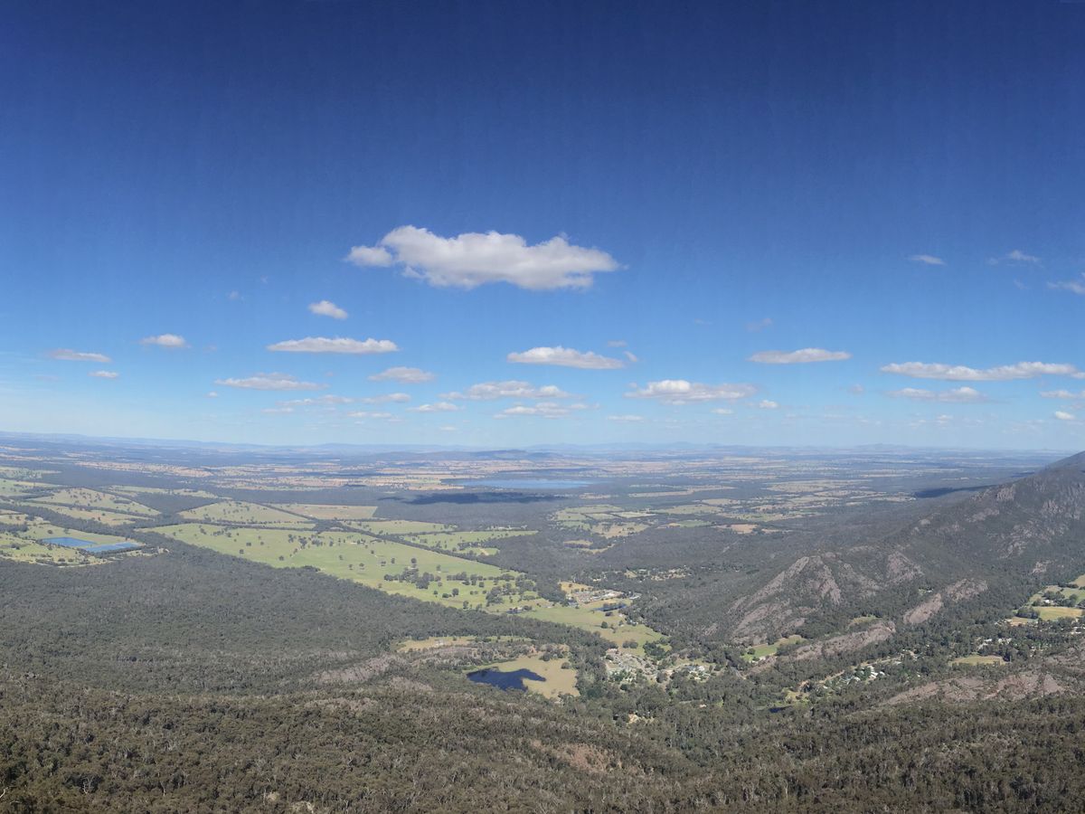 その後、ボロカ展望台へ行きランチ休憩したホールズギャップの町やグランピアンズの山々を眺めます。かなり風が強かったですが、一面緑の山と青い空を見て心癒される一時となりました。