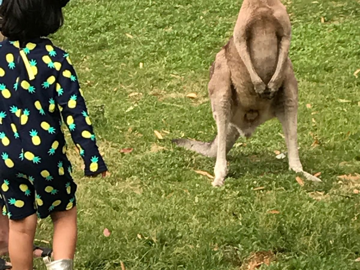 カンガルーが沢山いる公園のような処にも寄ってくれます。そっと近づいて写真を撮ることもできます。