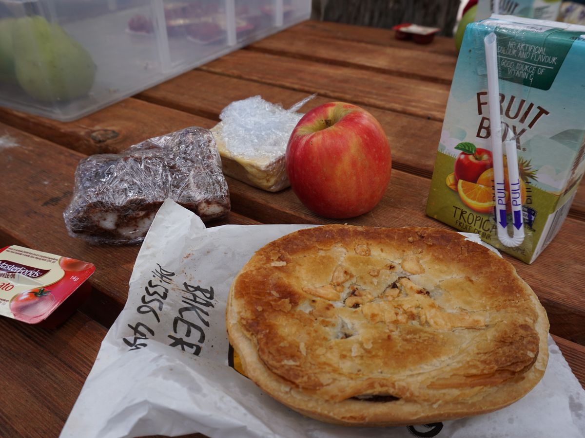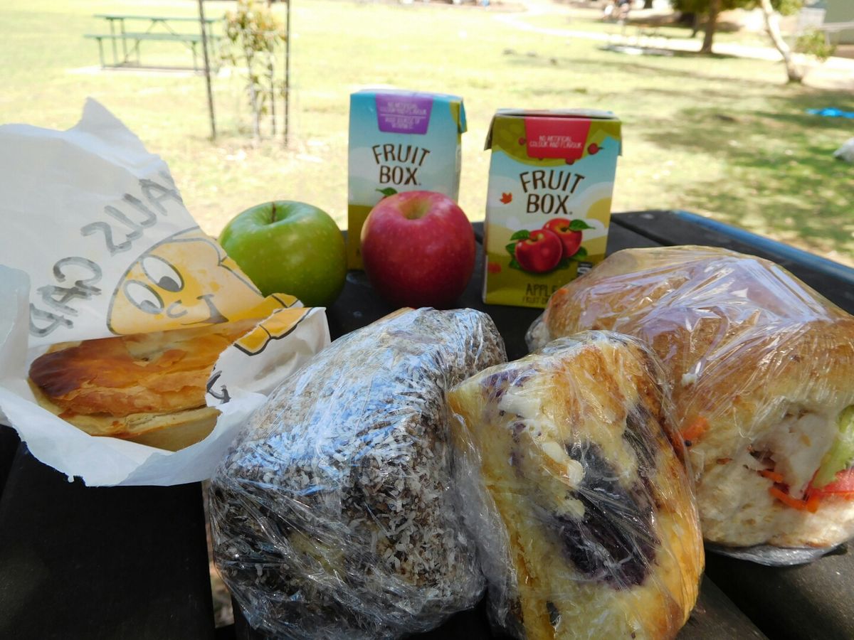 シルバーハンドの滝のあとは、またホールズギャップの公園に戻り、自由散策とランチで1時間程滞在します。ランチは朝に注文したサンドイッチかパイかペイストリーのうち1つと、ラップに包まれたケーキ1つ、オレンジかリンゴを1つ、パックのフルーツジュース1つです。温かかったので特にミートパイが美味しかったです。