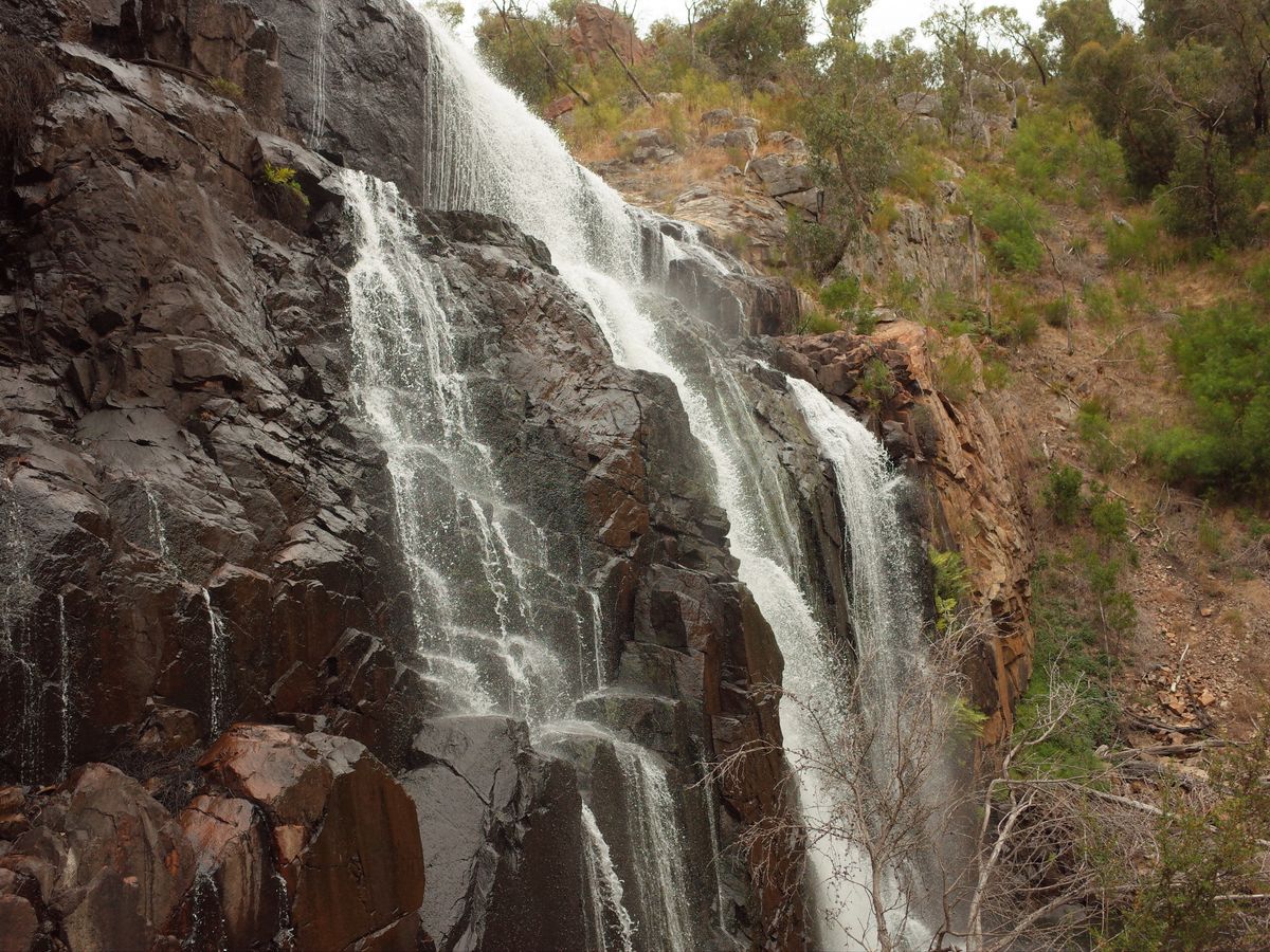 バララットの後はグランピアンズ国立公園の中のホールズギャップという町へ向かいます。山の中の小さな村で公園の前にちょっとした商店街のようなものがあり、アイスクリーム屋やお土産屋、ガソリンスタンドなどがあります。そこではトイレ休憩後に、再度バスに乗りシルバーハンドの滝を見に行きます。バスからは10分ぐらい山道を歩きます。滝自体は水量少なくそれほど感動的ではありませんが、山の中を歩くのは気分がよかったです。