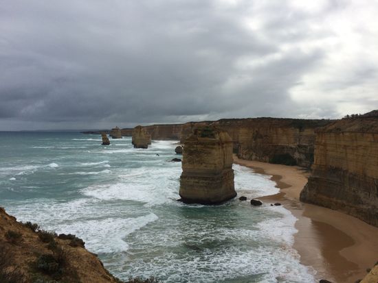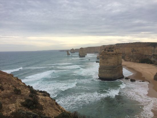 そしてついに12人の使途が見える場所に向かいました。写真で見たものよりやはり実際に見た景色は壮大で圧巻でした。私が訪れたときは小雨と強風が吹きすさぶ日でしたが、それでもここまで来て良かったと思いましたし、メルボルンまできたからにはここは絶対に外せないと思います。