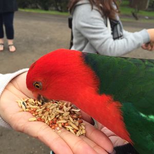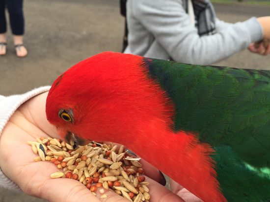 その後、野生のコアラ探しやカラフルな鳥たちと触れ合える公園に行き餌付けを楽しみました。