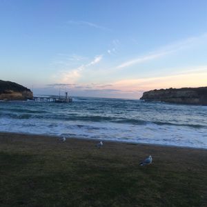 ツアーの人は、集合時間を15分過ぎても表れず不安な思いでロビーにて待っていました。その間に、トイレに出向けば良かったのですが。途中停まったローンの街と思われる川面の公園前でのモーニングティーでは、トイレに飛んで行く羽目になりました。天気も晴れてきて、川面には、ウォーキングロードが有り、こんな街に住みたいと思いました。アイパッド?を借りていたので2人でツアーの内容を日本語で詳しく聞くことができました。次の停留では、白や色彩豊かなオームが手にとまった。コアラも木の枝で葉っぱを食べているところが観察できました。オーストラリアに来る前は、街路樹にコアラ、公園にカンガルーが普通に見られると思っていました。メルボルン市内では、カンガルーや小動物を全く見られなかったので、感動しました。渡り鳥の鴈が、小さな水たまりで水浴びしているのが微笑ましいでした。車中では、海岸が見られる側に座りました。紺碧の海から海岸へ打ち寄せる白波は、サーファーの聖地と言われているだけに、打ち寄せる波と変化にとんだ海岸線の風景はとても美しい絶景の連続でした。途中から海岸線が見られなくなり牧場が続きました。牧歌的な風景でしたが、以前は森林に覆われていたのだと思う。羊や牛が草を食む風景は、自然を徹底的に開発との名目破壊し続けた結果だと思いました。自然を破壊し尽くし、環境保護を高らかに掲げるオーストラリアという国の矛盾を垣間見ました。