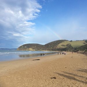 グレートオーシャンロードでは、5分ほど大雨が降りましたが、直後に大きな虹が現れ、とても美しかったです。海から山につながる地平線が滑らかな円を描き、神々しく絶景でした。