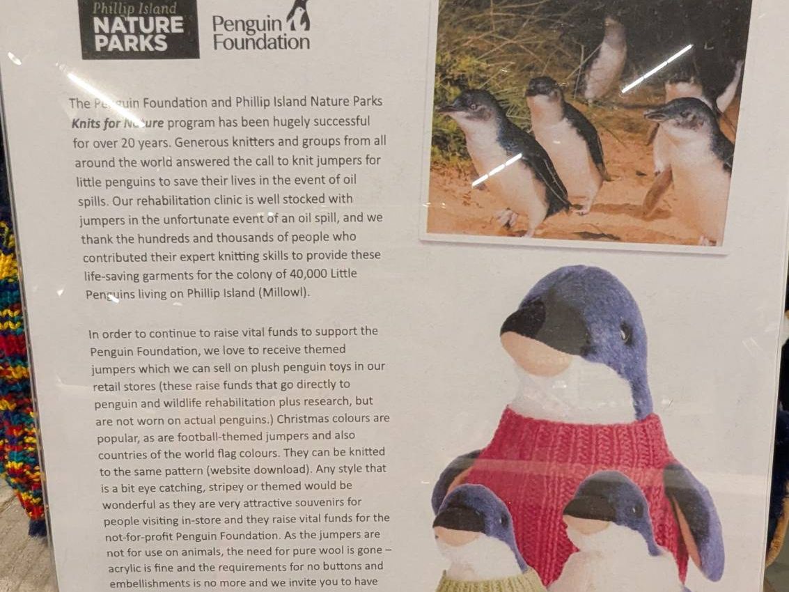 ペンギンセンターのショップにはニットを着たペンギンのぬいぐるみがあります。なぜニットを着ているのか?写真をあげておきますが・・・・現地でご確認を。