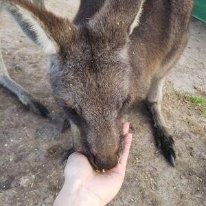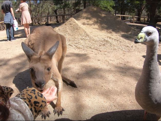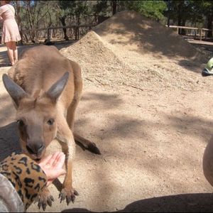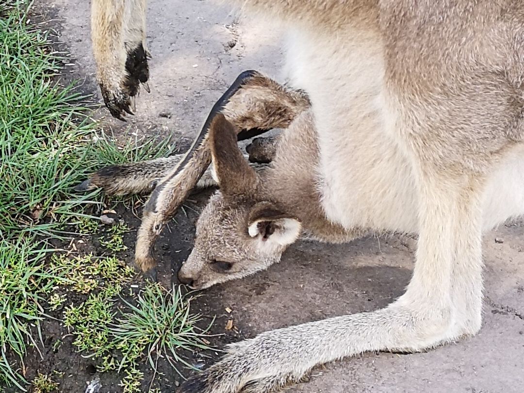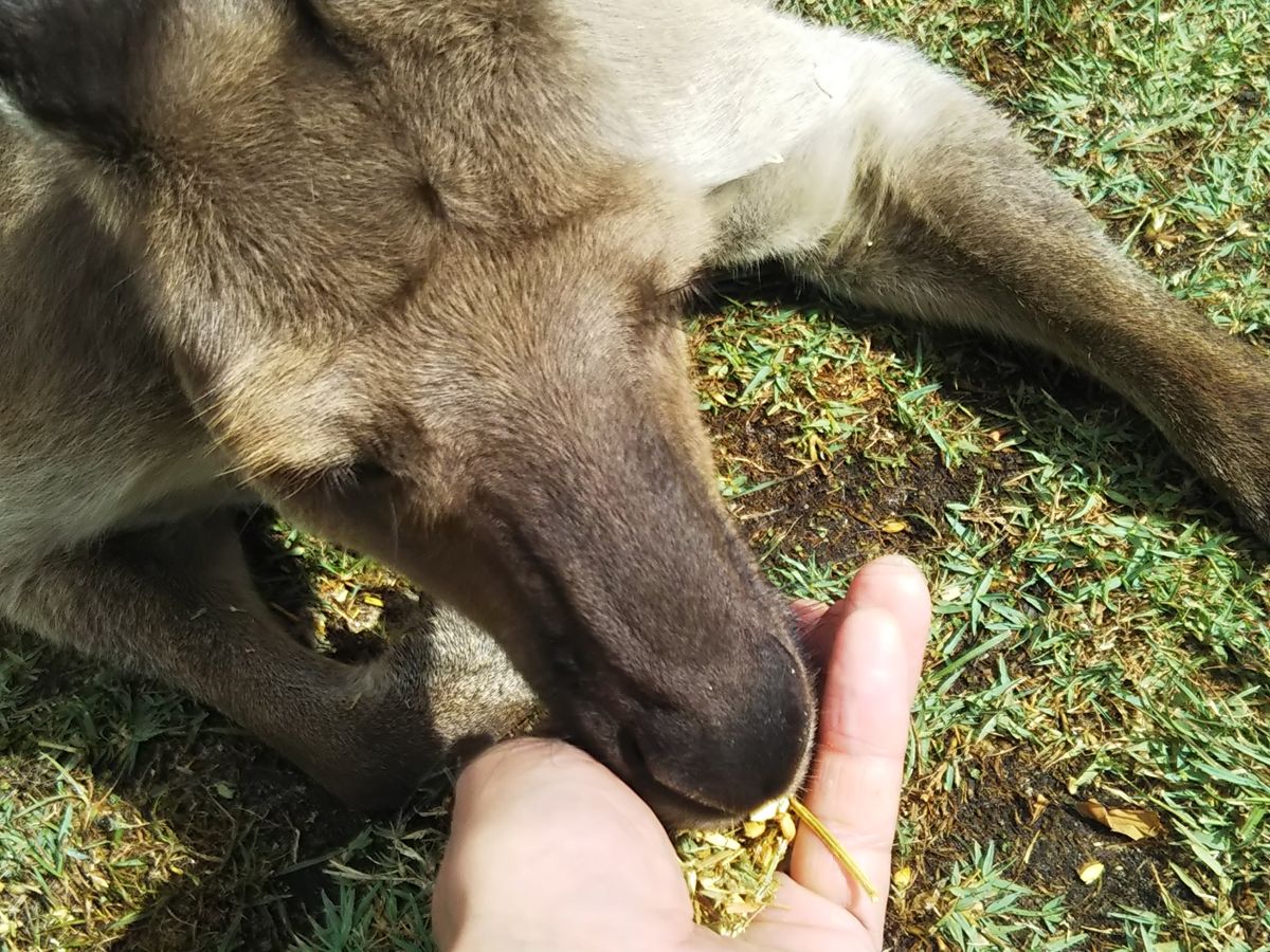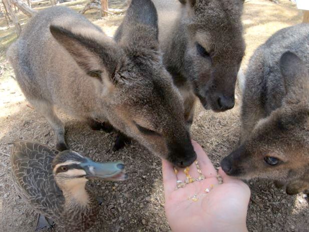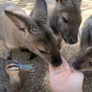 コアラは寝ていて遠めに見えるくらいでしたが、カンガルーやワラビーのエサやりが楽しかった♪エサ代1袋2ドル。2袋買いました。