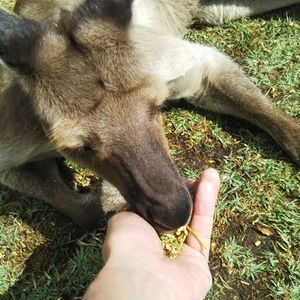 アニマルパークではカンガルーに餌(餌:AUD 2)をあげたり、コアラと写真撮影(有料)ができます。私たちは写真撮影は行いませんでしたが、わりと近くでコアラのかわいい昼寝姿を撮影できたので満足です。その他にも沢山動物はいてとても癒されました。羊の毛をかるショーもやっていて、かわいかったです。
