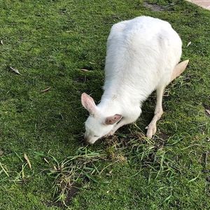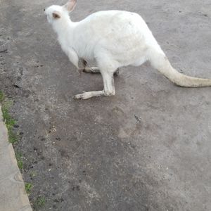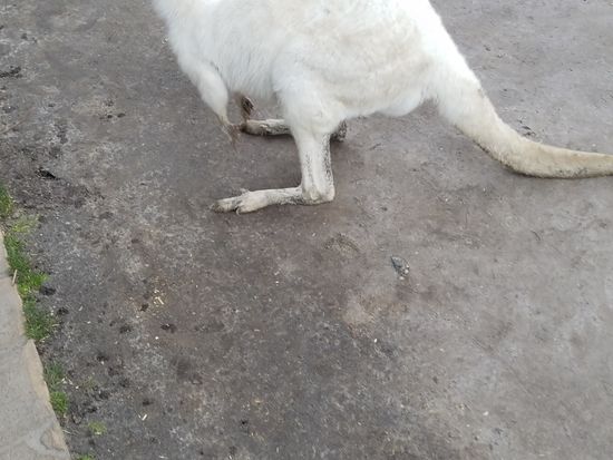 写真は、ペンギンを見る前の小さい動物園でのアルビノのカンガルーです。