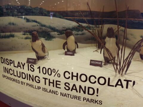 次に地元のレストランで食事です、映画に出てきそうなローカルな感じのお店はジョンさんに連れてきてもらわなければ絶対に行けないでしょう。私はフィッシュアンドチップスとシーフードグリルを注文しました。安くてとてもおいしかったです。食後の自由時間の後、フィリップ島へ、ジョンさんツアーを選んだ理由の一つであるチョコレート工場に寄ります。こくのあるおいしいチョコレートを試食させてもらえました。ここで購入したチョコレートはとても喜ばれるお土産になりました。