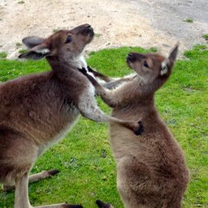 道中は真っ直ぐな道で、馬・牛・羊等の動物を沢山見る事ができました。さらに、フィリップ島のサーキット場の隣でカンガルーをバスから降りて見る事もできました。