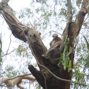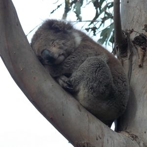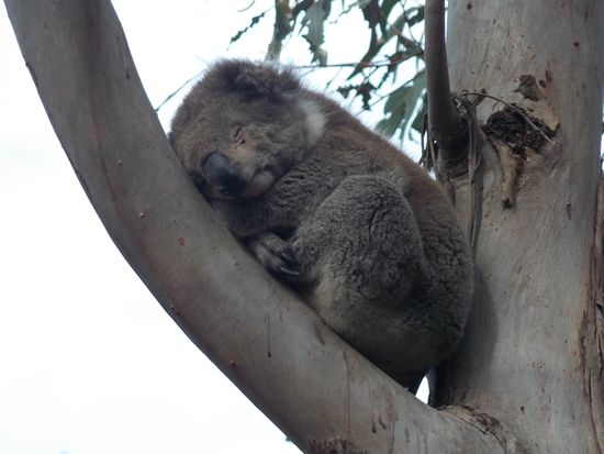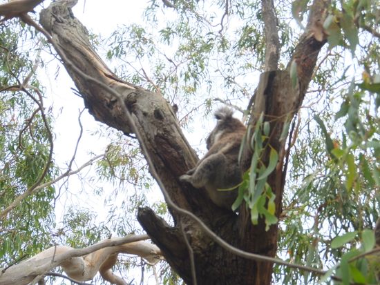 さて、次は本日のメイン、コアラとペンギンです。コアラコンサベーションセンターではボードウォークでコアラ探し。最初はなかなか見つからず困りましたが、いました・いました。ユーカリの葉を美味しそうに食べてるのが。最後の方ではかなり近い木に止まってました。近くで見るとこんなに可愛いのに触ったり抱っこできなくて残念!
