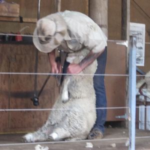 見学。刈り取った羊毛はふわふわで思ったほど臭くはありませんでした。