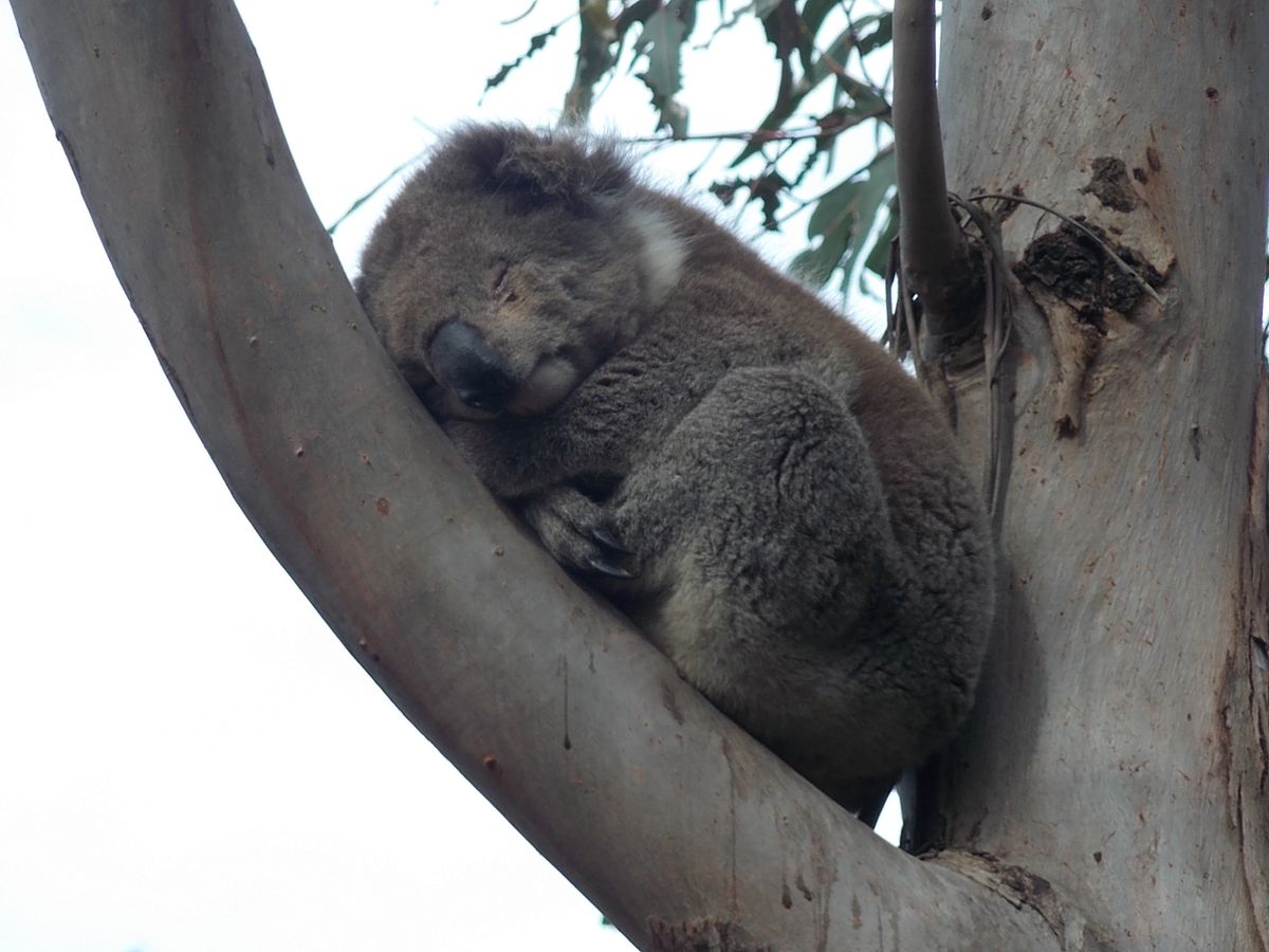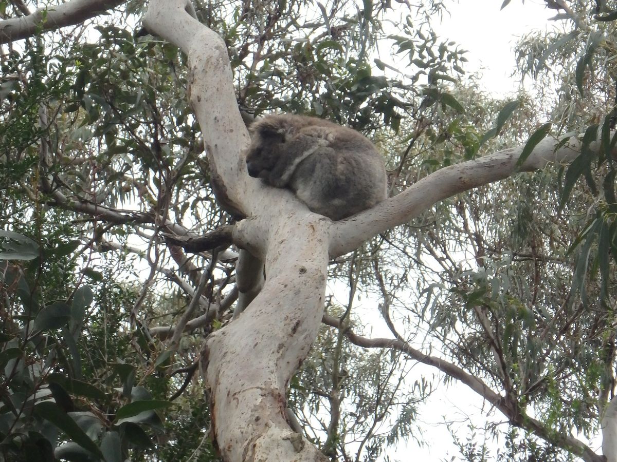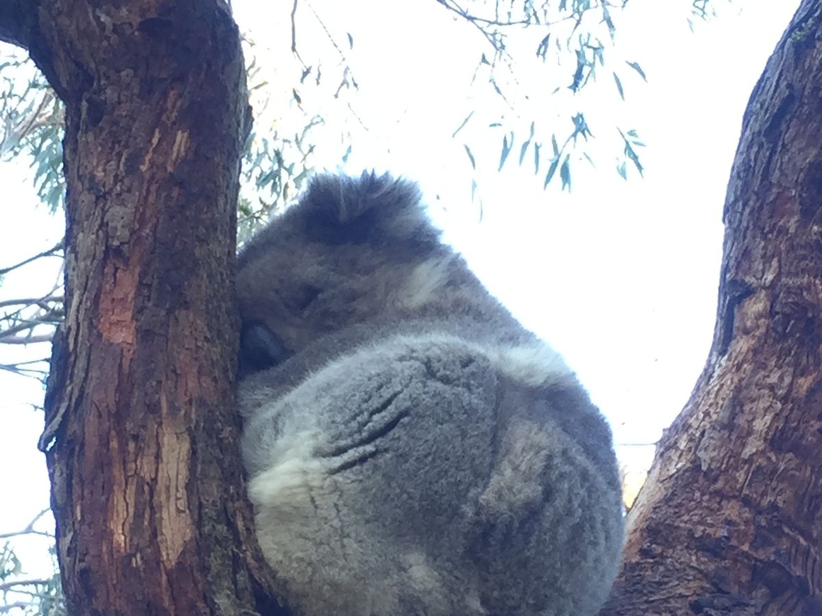 さて、次は本日のメイン、コアラとペンギンです。コアラコンサベーションセンターではボードウォークでコアラ探し。最初はなかなか見つからず困りましたが、いました・いました。ユーカリの葉を美味しそうに食べてるのが。最後の方ではかなり近い木に止まってました。近くで見るとこんなに可愛いのに触ったり抱っこできなくて残念!