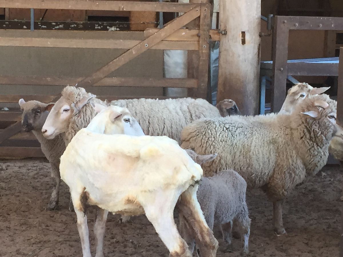 見学。刈り取った羊毛はふわふわで思ったほど臭くはありませんでした。
