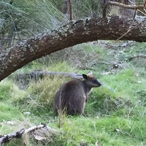 島についてからは、まず休憩を取ります。ここで食事をしたい人は食事を取ります。我々は、フィッシュ&チップスとシーフードフライ、ビールをいただきました。あまり時間はないので、食事を取る方はまっすぐ店内に向かった方が良いです。その後バスでペンギンスポットへの移動中に、野生のワラビーがたくさん見れます。