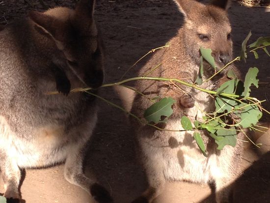 その後もうひとつのビジターセンター(こちらの方が大きくてお土産も食事もある)に、移動がてら、busをゆっくり走らせワラビーをみせてくれた。いっぱいいて興奮!