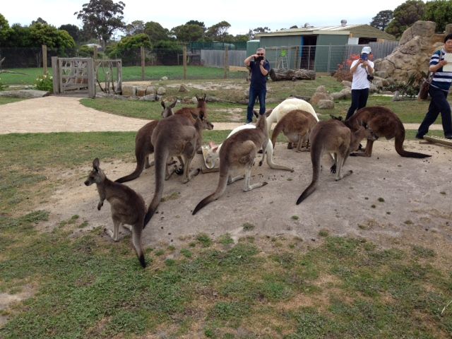 ペンギンパレードが行われるフィリップ島までは、メルボルンから結構距離がありましたが、途中で小さな動物園に立ち寄りコアラ、ワラビー、カンガルーなどが見れました。カンガルーには餌付けもできますが夜行性のためかあまり活発ではありませんでした。