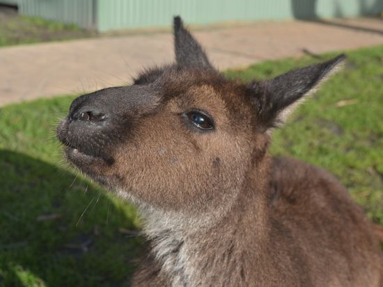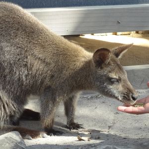 ペンギンの前に立ち寄る動物公園でのカンガルーとのふれあいコーナーでは