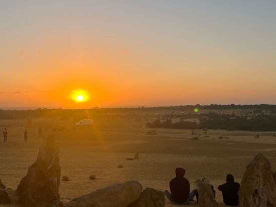 ピナクルズの間から見る地平線。そこへ沈んでいく真っ赤な夕日がピナクルズ全体を幻想的な世界へ変えていきます。日が沈むまでたっぷりとご観賞ください。