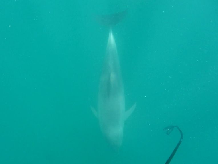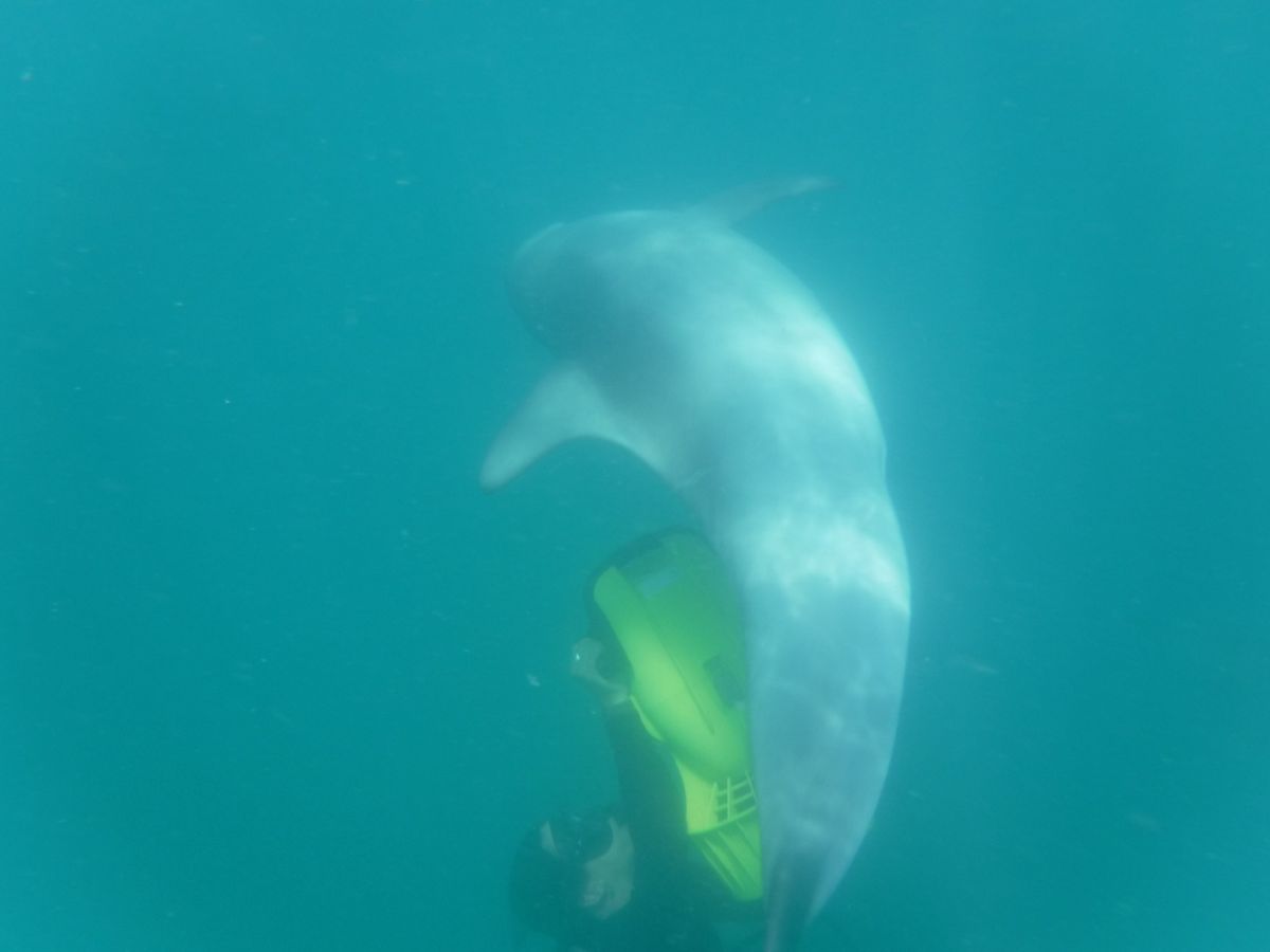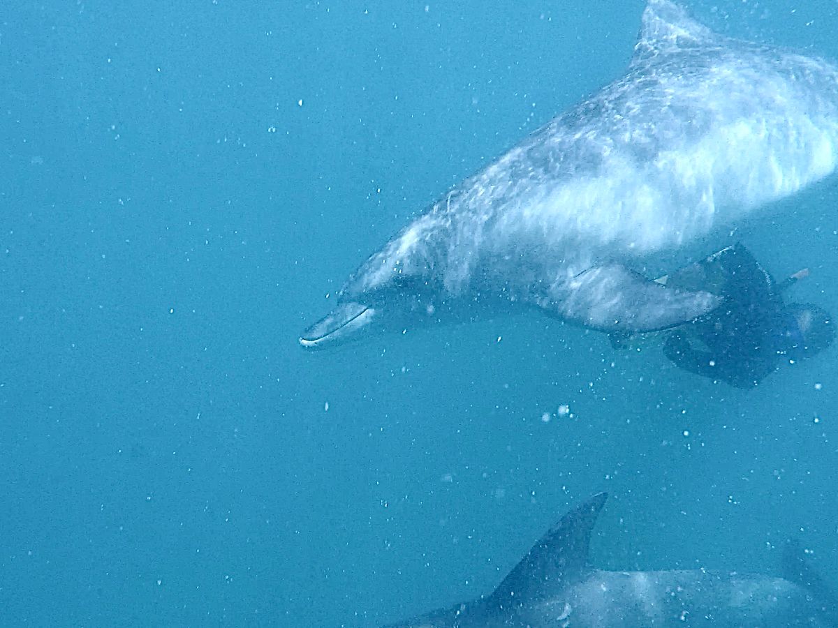 シュノーケルはやってみると何も心配ありませんでした。ガイドが先頭で水中スクーターに乗り、参加者は5人1組くらいのグループに分かれ、前の人のベルトを掴むだけです。みんな足をバタバタしてますが体が浮くウエットスーツを着るし水中バイクで引っ張られるのでコツは何もしないこと!ただ息をしていれば大丈夫。今回はイルカも餌を探している時期だったようでたくさんは見れなかったのですが近くまで遊びに来てくれた子たちをうまく動画撮影することができました。普段はこの数倍はイルカがいるということですのでまたいつか泳ぎに来るしかないですね!!