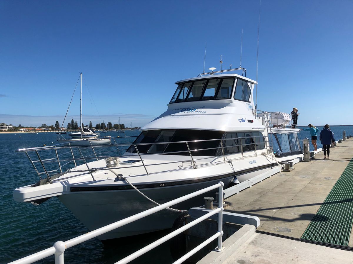 ツアーは現地発が基本ですが、オプションでパース中心部からの送迎を付けることが出来ます。私はパースから参加、早朝6時40分にパース中心部のベルタワー付近でピックアップしてもらい、13時30分頃に戻ってきました。戻りの時間はイルカとの遭遇度合等で変わってくるみたいです。