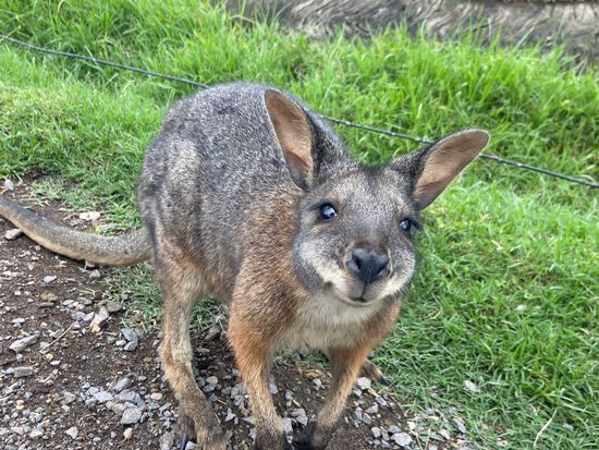 曇り時々小雨でしたがイルカも間近に見ることができ、フィッシュアンドチップスも美味しかったです。砂丘滑りも思いのほか楽しく、年甲斐もなく何度も滑りました。真っ白な砂に囲まれた景色は壮大です。動物園ではどこよりもアクティブなコアラに触ったり、カンガルーやヤギ・ヒツジと触れ合ったり、動物好きにはたまらないツアーです。何よりガイドさんの長年のオーストラリア生活の楽しい話をたくさん聞くことができて、お値段に
