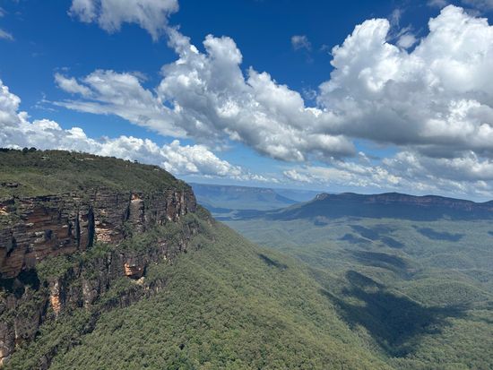 断崖絶壁から雄大なブルーマウンテンズを眺望できる、リンカーンズ・ロックへ向かいます。周りには柵がないためスリル満点ですが、開放感たっぷり。