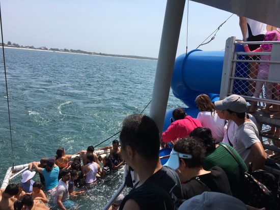 宿泊先のフォーシーズンズホテルまでバスで迎えに来てもらい、午前中は船でのイルカウォッチング、午後からは広大な砂浜でのバギー体験でした。