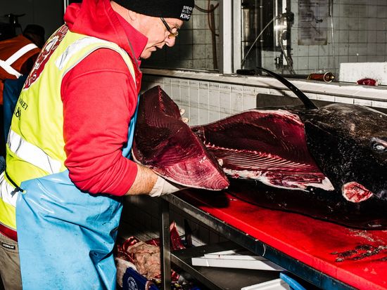 商業用漁船とサステナブル漁法についての解説を聞きながら、通常は立ち入れない鮮魚荷揚げ用リフト上部から市場の様子をご覧いただきます。見学後は、ドリンク1杯と、季節のシーフードカナッペもお楽しみいただけます。
