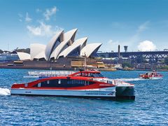 赤い高速カタマランに乗り、メインハーバーからマンリーまで往復する高速クルーズです。途中、タロンガ動物園、シャーク島、ワトソンズベイ、マンリー、サーキュラーキー/オペラハウス、ダーリングハーバーに短時間停泊します。
