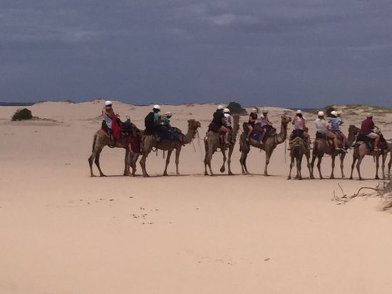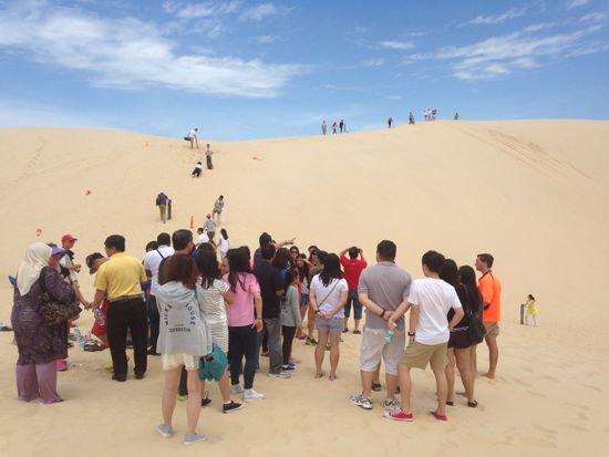 1回のトイレ休憩30分をはさみ、約3時間移動しました。車の中はWifiも使えて快適でした。最初に到着したのはストックトン砂丘。4WDに乗って砂丘に連れていってもらい、その後にsand boardを楽しみました。