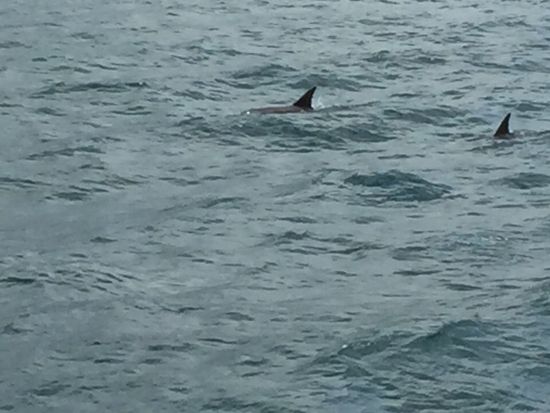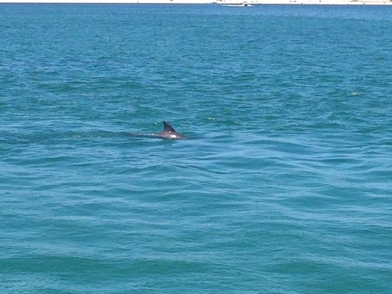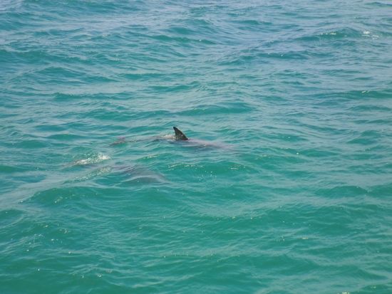 その後、待ちに待ったドルフィンウォッチング!本当に見れるのかな⁈とすこし心配ではありましたが、15分くらい沖に出たところでみんながデッキに移動して行きました。流れに乗るようについて行き見てみると…イルカのヒレがぴょこっと水面から見えました!みんな大興奮でビデオやカメラを水面に向けていました。イルカの群れは水面に出たり潜ったりしていたので、常に見えていたわけではなかったのですが、クルーズの間、何度も見ることができました!野生のイルカを見たのが初めてだったので、とてもいい経験になりました。