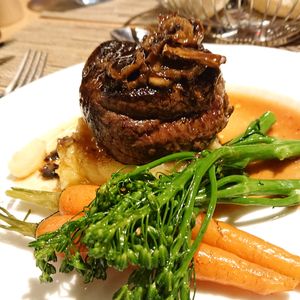 (ちなみにエビの前菜とテンダーロインのメインを選びました)