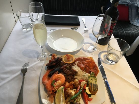 80代の母と利用するので、ビュッフェだときっとガサガサして落ち着けないだろうし、窓側の席を確保するのに他の乗客と先を争うのが嫌だったのでアッパーデッキでの2コースランチに、窓側確定のオプショナルを付けました。