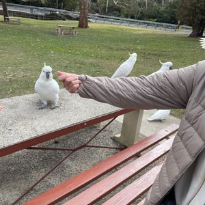 野生のカンガルーやオウムも周辺に多く生息しているとのことで、今回はオウムの群れを間近で見ることができました。