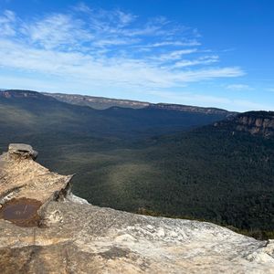 朝急いでホテルの朝食を食べて、ピックアップ場所へ。大きな車に乗って、約2時間、キングステーブルに到着しました。足を一歩踏み外したら、、、。の場所ですが、青空に緑の木々、茶色の岩壁を前にして、とてもとても感動しました!ツアーガイドさんが写真もたくさん撮ってくださり、ジャンプしている写真なんかも撮ってくださいました。その後はスリーシスターズに向かいます。バスに乗っている最中にブルーマウンテンズやスリーシスターズのお話を楽しくしていただいたので、実際に見た時には、「あ!あれがスリーシスターズか!」と嬉しくなりました。その次はアクティビティをして、ルーラの街で昼食を食べました。ミートパイのお店はやはり人気で激混みだったので、私はピザ屋に行きました。ピザもとても美味しかったです。その後はショッピングをして革の鞄を購入しました!