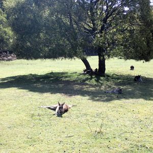 野生のカンガルーが芝生の上をぴょんぴょん、まるで奈良県のシカ状態、楽しいですよ。