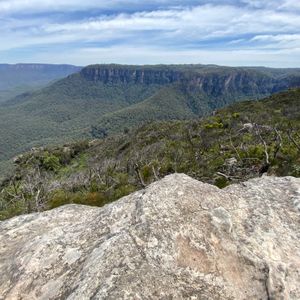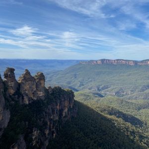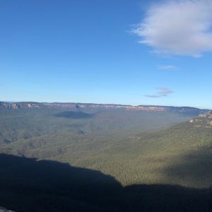キングズランドテーブルからのブルーマウンテンズの景色、雄大で素晴らしかったです。エコーランドからのスリーシスターズは、見え辛かったですが、ブルーマウンテンズの魅力は、お盆に巨大な蒲鉾を乗せた様な山の風景にあると思います。スリーシスターズはその極一部の小さな岩に過ぎません。ここに拘る必要は全くありません。良く晴れた視界良好の時に訪れるのが何よりだと思います。私は、好天に恵まれて本当に幸せでした。