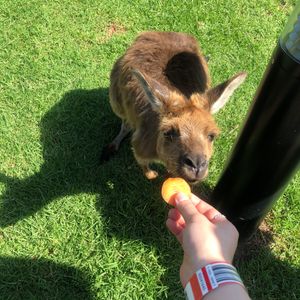 シドニー動物園では、カンガルーに餌やりと触ることができます。シドニー動物園の方がタロンガ動物園よりコアラとカンガルーは距離が近かったです。なぞの昔の人々の生活や歴史についての説明で30分以上時間を取られてしまったので、英語がまったく理解できない私にはもっと動物を見たい気持ちでいっぱいでしたので、そのまま説明を聞かずに自由に回った方がと思います。