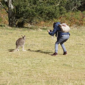 「野生カンガルー探検」とタイトルにあるので、てっきり広い草原でカンガルーを探し回って遠目に眺めるものと思っていたのですが、カンガルーの群れが寛いでいる場所に連れて行ってもらえ、間近で見る(触れ合う)ことが出来、思い出に残る体験となりました。