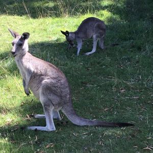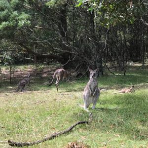 野生のカンガルーもすぐ見れてラッキーでした。野生とはいえ、すぐ触れそうです。