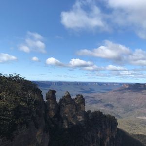 シドニーはあいにく曇りでしたが、ブルーマウンテンズについたら、雲が消えてきました。前日は真っ白な霧だったそうで、ラッキーでした。ブルーマウンテンズは、ユーカリの木の水蒸気でガスがかかることが多いそうです。ツアーは、全部日本語でせつめいしてくれますし、トイレもちょくちょく案内してくれるので安心です。時折ジョークも混じります。私達は、マシューさん(本人はマチューと言ってました)が担当してくれました。ツアーでは、昼時にミートパイの有名なところを案内してくれます。これが、ホントに美味しかったです。私はカンガルーのミートパイを食べたのですが、中身はシチューになってました。支払いはカードも使えました。ブルーマウンテンズは、色んな場所から何度も景色を楽しめました。ツアーならではの楽しみ方ができました。