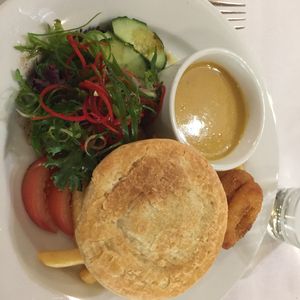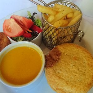 ランチはミートパイ、キッシュ、フィッシュから選ぶのですが 娘と二人でしたので ミートパイとフィッシュを頼み どちらも食べましたが 美味しかったです。