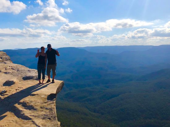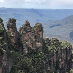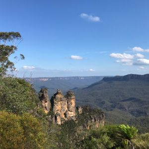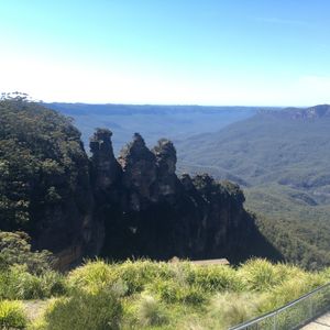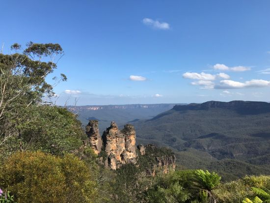 今回のシドニー観光の一番の目玉が、ブルーマウンテンツアーでした。最初の目的地が近づくにつれて、霧が発生して来ました。ツアーガイドのジャックさんの機転により、後から行く予定だった街の観光を先に済ませましたが、それでも霧は晴れず、トロッコとゴンドラに乗る時刻になっても、視界は真っ白。私は仕方なくゴンドラを諦め、散策することにしました。するとわずか1分程度だと思いますが一瞬霧が晴れ、山から谷へ流れ落ちる滝が目の前に現れました。次の目的地スリーシスターズに着く頃には霧も完全に晴れ、空には太陽が。遠くの壮大な山々が鮮明に見え、感動しました。最後は、日本人はなかなか行く機会のないと言う絶景ポイント。一歩踏み間違えると崖に転落しそうな場所でした。午前中から一転して、途中からは壮大な自然の景色を満喫出来る素晴らしいツアーとなりました。