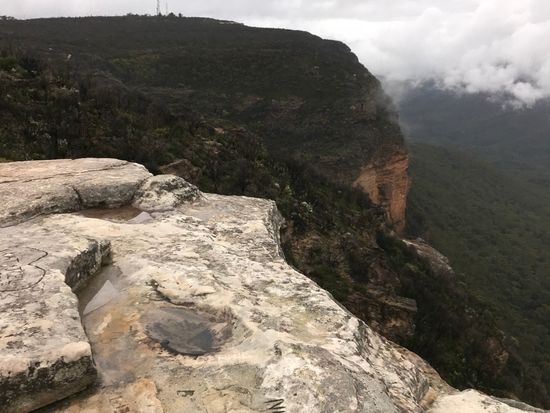 最初にキングステーブルランドに…崖には柵がなく自己責任です…恐々崖っぷちに足をぶらぶらして写真をインスタバエすること間違いなしーー 次に向かったのはスリーシスターズ、残念ながら霧?雲で全く見えなかったです! ガイドさんオススメ、パイも食べました!(勿論ツアーには含まれていないからねー)